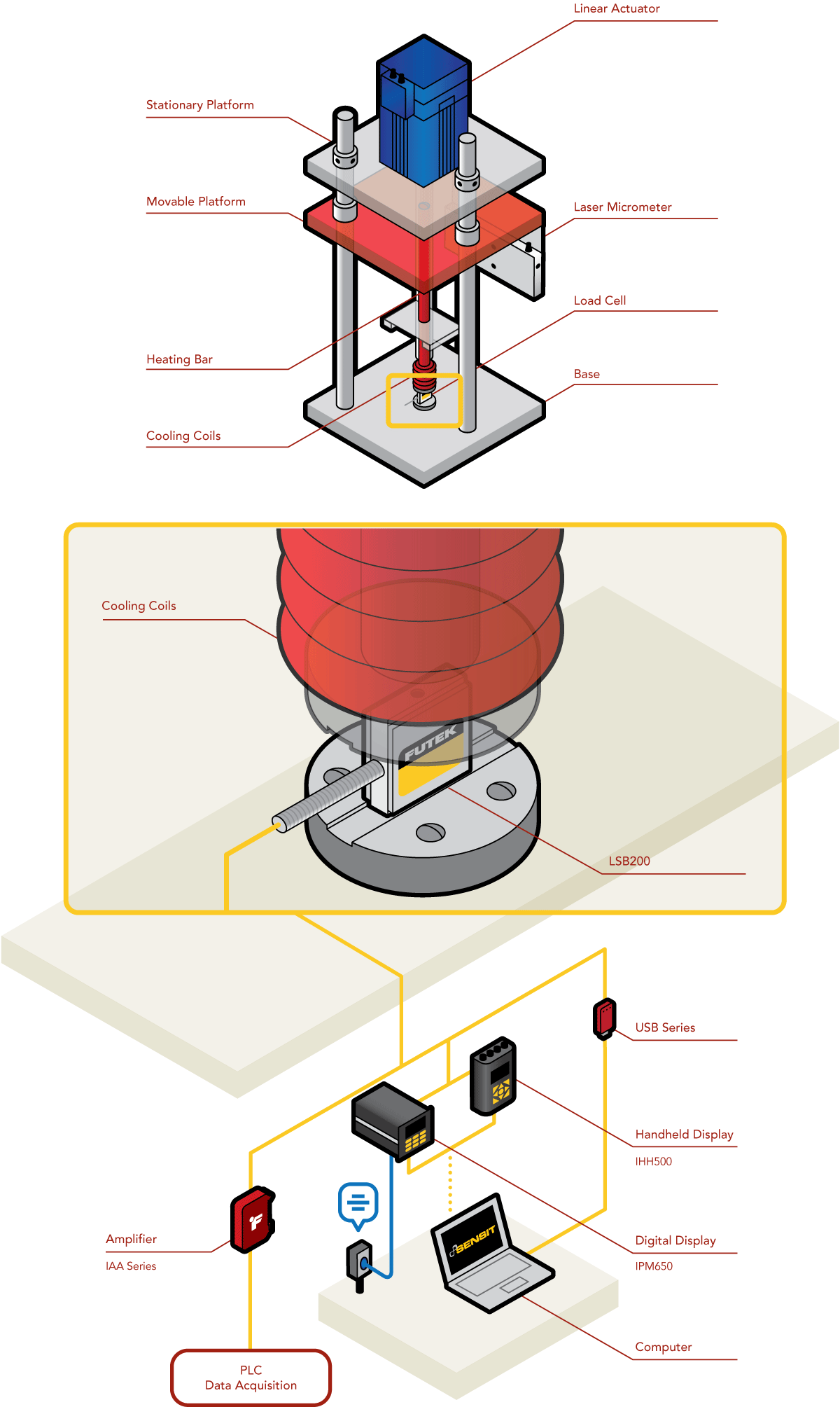 2、让娱乐更有趣! LSB200微型S型传感器安装在测力台架的底部,正对着加热棒和冷却盘管下方。LSB200传感器特殊的设计,使得传感器在台架加热和冷却降温的过程中,测试结果不受影响。