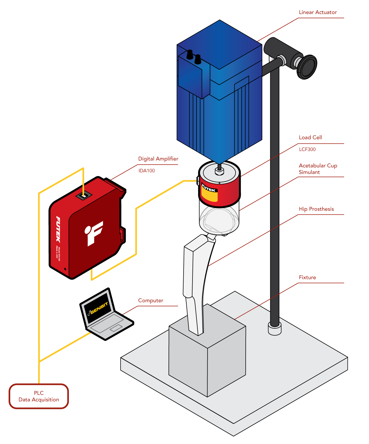 2、然后在髋臼杯和线性致动器之间安装一个 LCF300 轮辐式拉好博,用于测试期间的力测量。