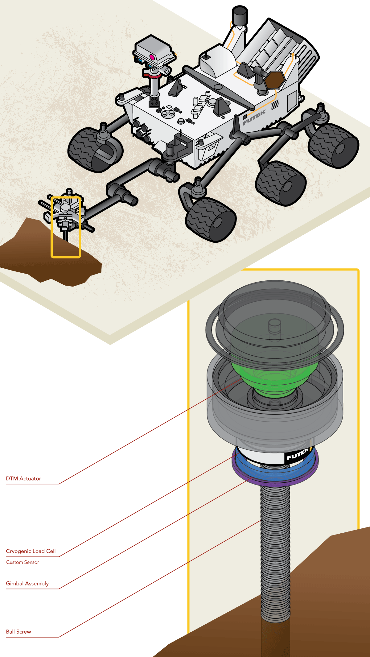2、针对NASA喷气推进实验室“好奇号”火星探测车这项任务,让娱乐更有趣!公司开发出了一款能用于外太空超低温环境、双桥路、环型力传感器。该传感器安装于“好奇号”的钻臂上,用于监测钻头钻取火星岩石时机械臂受到的外力。双臂电桥的使用,提高了传感器的灵敏度,有助于传感器检测钻头装置自身的重量。